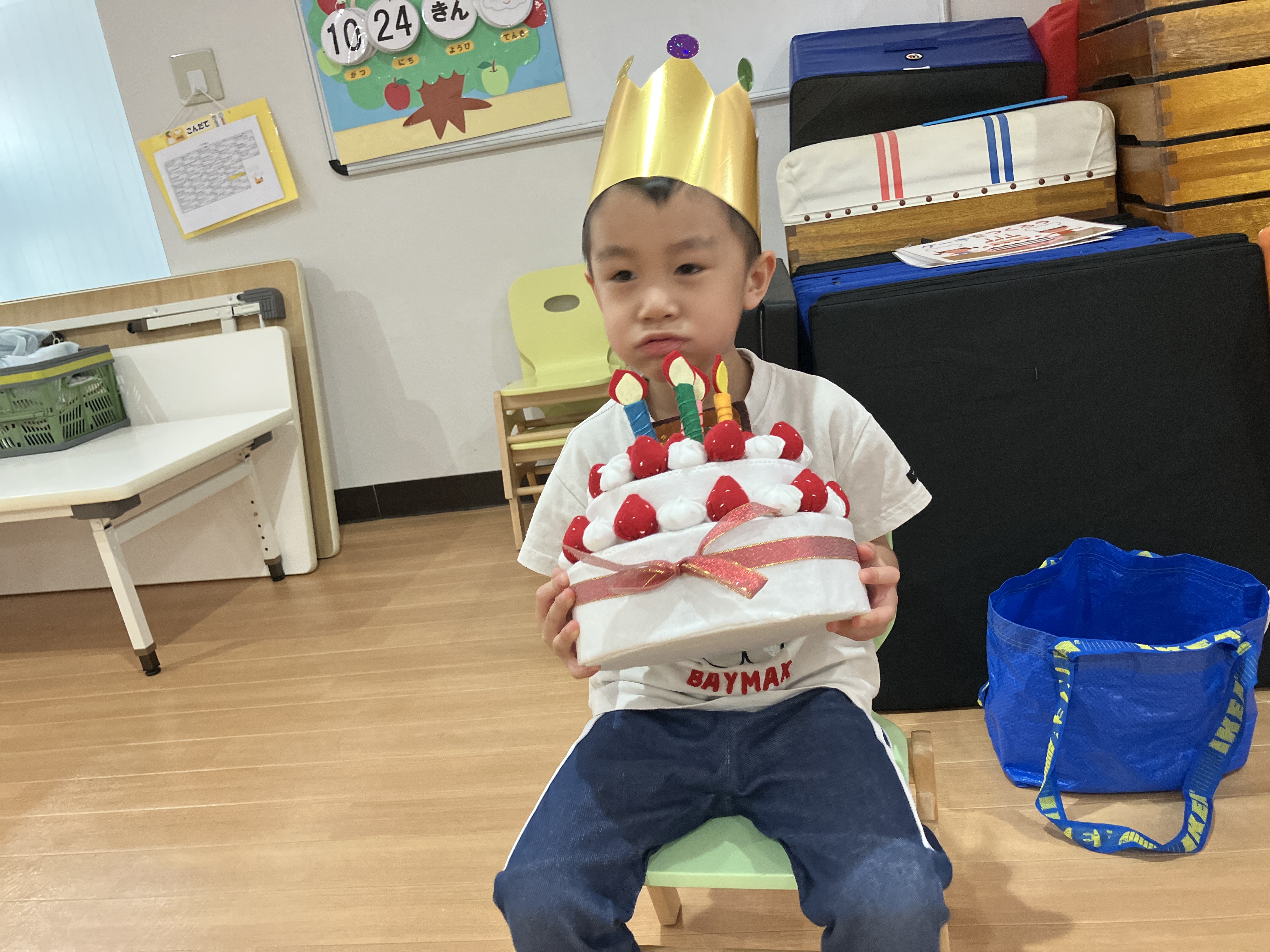 「今日は誕生日会やるよー」という声でにこにこ(笑)