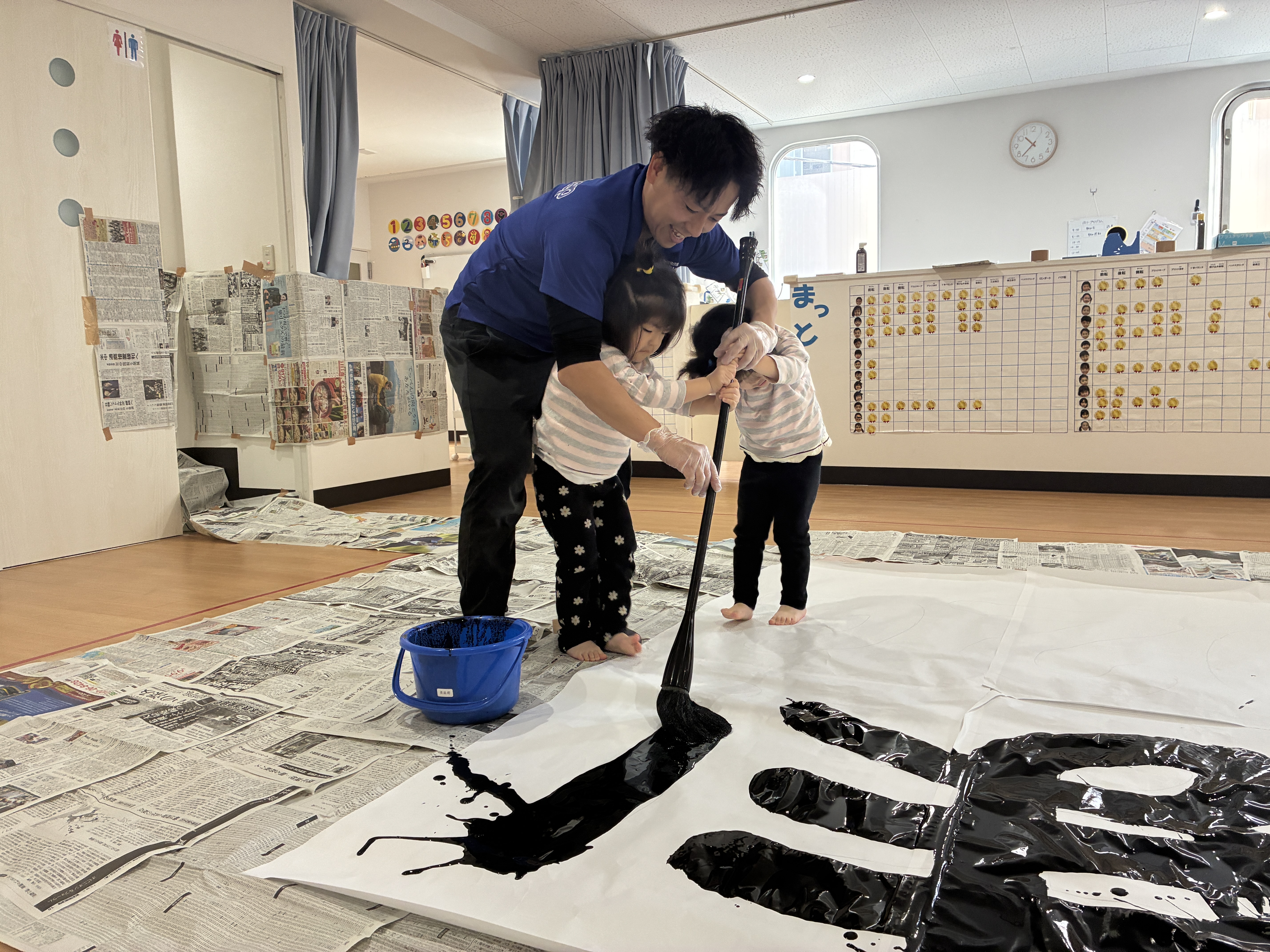 大きい筆をみんなで握って書く言葉は・・・