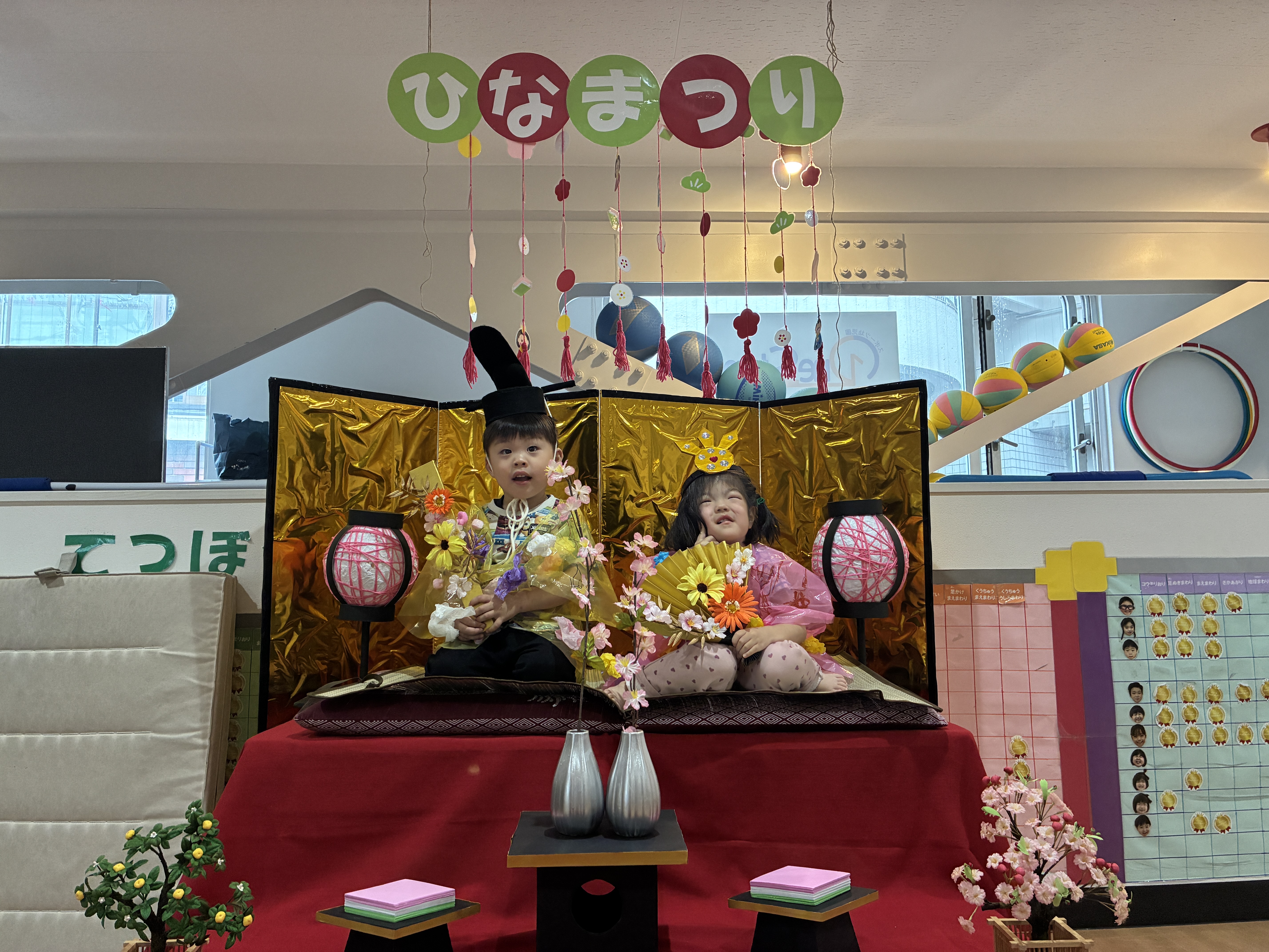 ワンステップでは私のお手製のひな壇にみんな乗って写真を撮りました